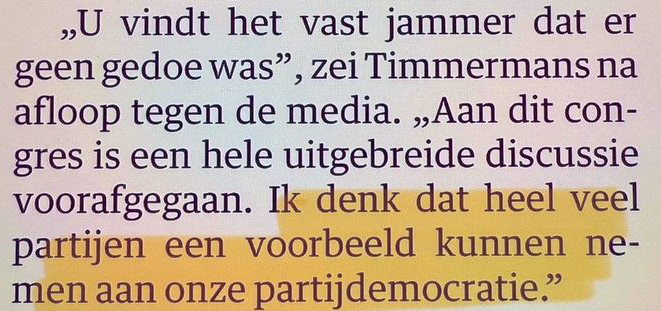 Het is treurig dat die golf er niet is gekomen. Sterker nog is dat initiatieven van onderop om de ledendemocratie te versterken zijn ontmoedigd en daardoor uitgedoofd.