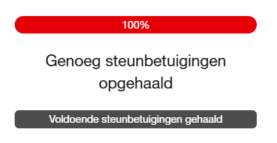Een motie heeft 100 steunbetuigingen nodig om door te gaan naar de volgende ronde in het Stemlokaal. Als dat het geval is staat bij de motie: