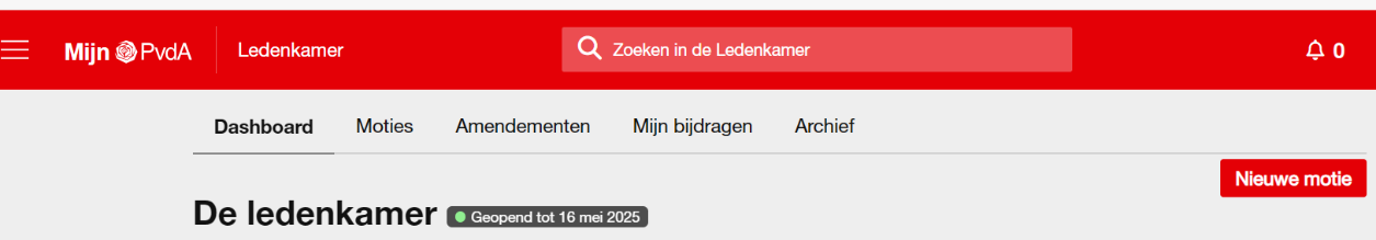De Ledenkamer is een platform voor leden voor inbrengen en het vergaren van steun voor moties of amendementen. Leden kunnen hier zelf nieuwe moties of amendementen aanmaken of de moties of amendementen van anderen steunen.