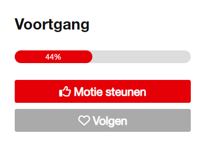 Om een motie te steunen klik je op Motie steunen. Wil je weten hoe de voortgang van de motie gaat kun je klikken op Volgen.